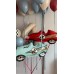 Фонтан из 10 шаро (1 круг с рисунком и надписью, 9 однотонный пастель)на лентах тканевых
