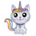 Шар (35''/89 см) Фигура, Котенок Единорог, Голубой